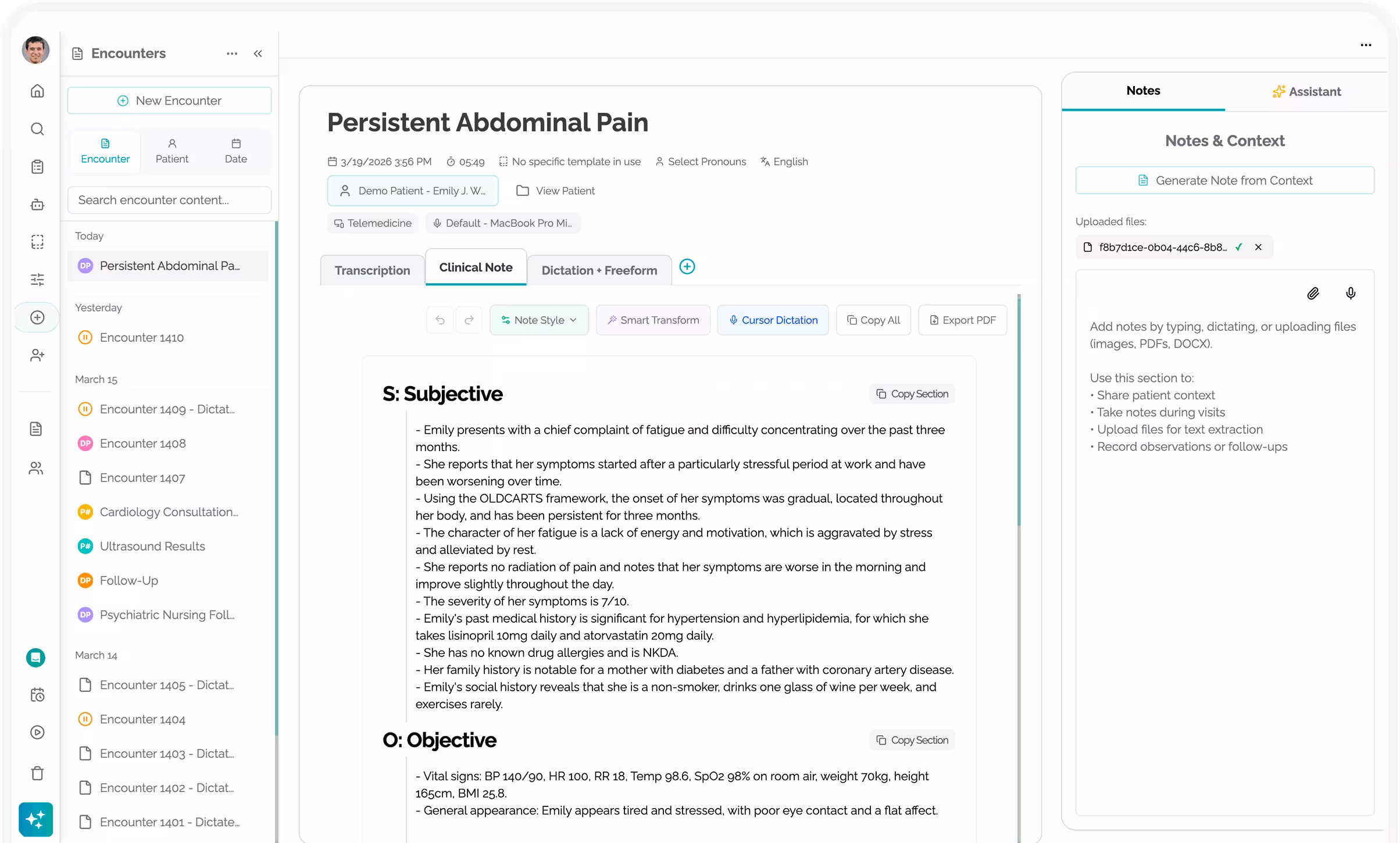 - Engineered core features including ambient AI scribing with live transcription and speaker attribution, structured SOAP/progress notes, specialty-specific smart templates (e.g., Rheumatology, Pediatrics, Cardiology), real-time dictation during consultations, encounter tracking, and an AI Clinical Assistant delivering instant evidence-based guidance on medications, billing codes, patient history, and clinical questions.